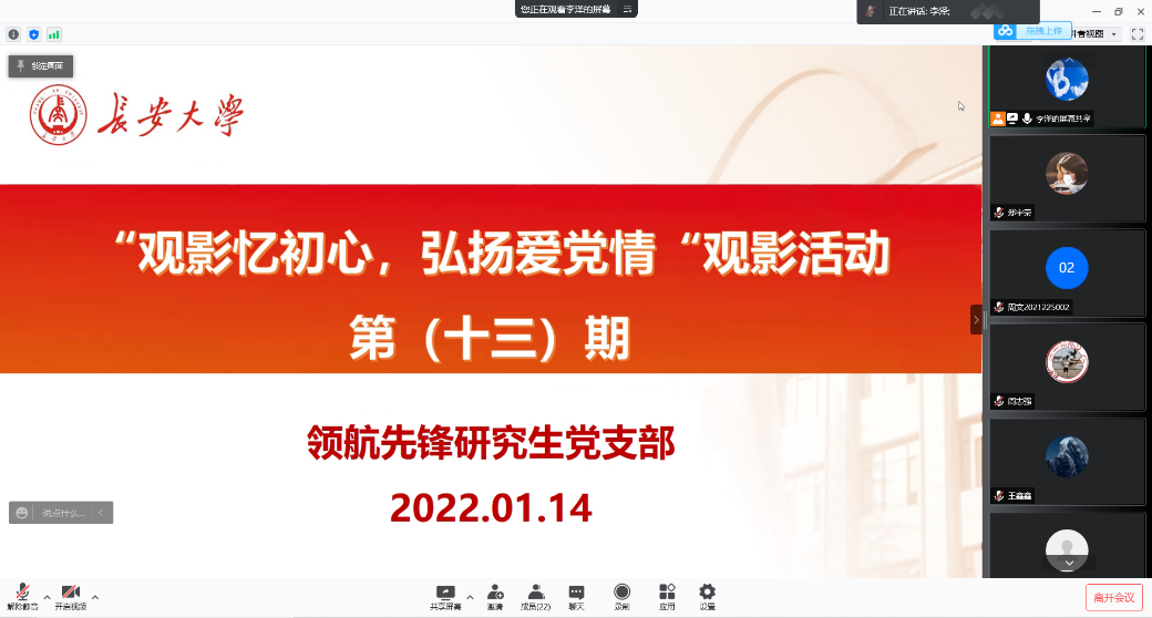 2022年1月14日上午15:00,澳门娱乐城 领航先锋党支部组织支部成员线上观看《省部级主要领导干部学习贯彻十九届六中全会精神专题研讨班》视频。支部全体党员参加了此次活动,本次活动由支部副书记李泽同志主持。