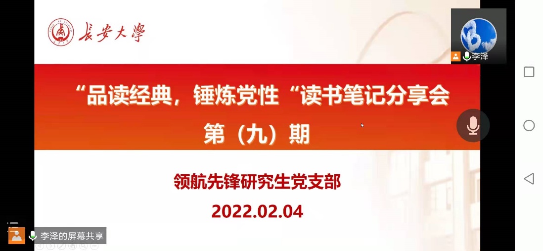 2022年2月4日下午14:30,澳门娱乐城 领航先锋党支部组织支部成员线上开展了第九期读书笔记分享活动,本次活动由支部成员李泽同志和梁艳彬同志做读书笔记分享。支部全体党员参加了此次活动。