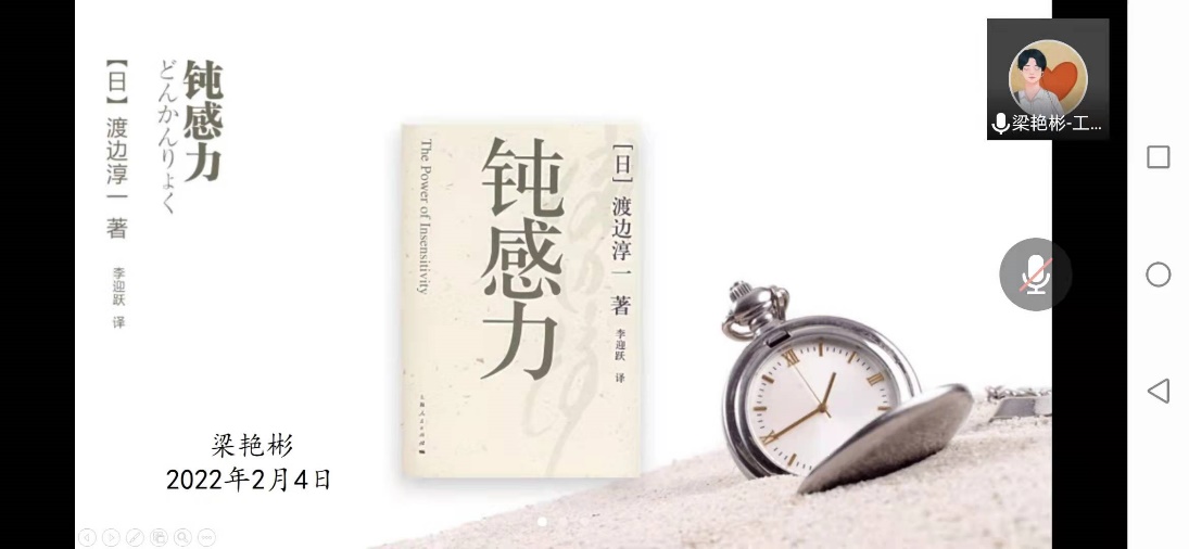 随后,梁艳彬同志分享了渡边淳一所作的《钝感力》,这本书告诫现代人不要对日常生活太过敏感,“钝感力”(迟钝的能力)是非常必要的。梁艳彬同志表示:如今,钝感力似乎比我们当今社会鼓吹的敏锐的洞察力更为重要。而当代很多人却也正是那种过于敏感、极度欠缺钝感力的人。我们需要的,正是那种宽容、平和、泰然处之、不急不躁、不怒