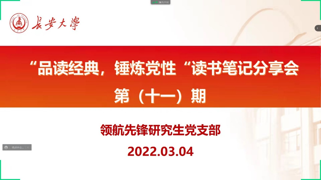 2022年3月4日上午11:00,澳门娱乐城 领航先锋党支部组织支部成员线上开展了第十一期读书笔记分享活动,本次活动由支部成员曹壮壮同志做读书笔记分享。支部全体党员参加了此次活动。