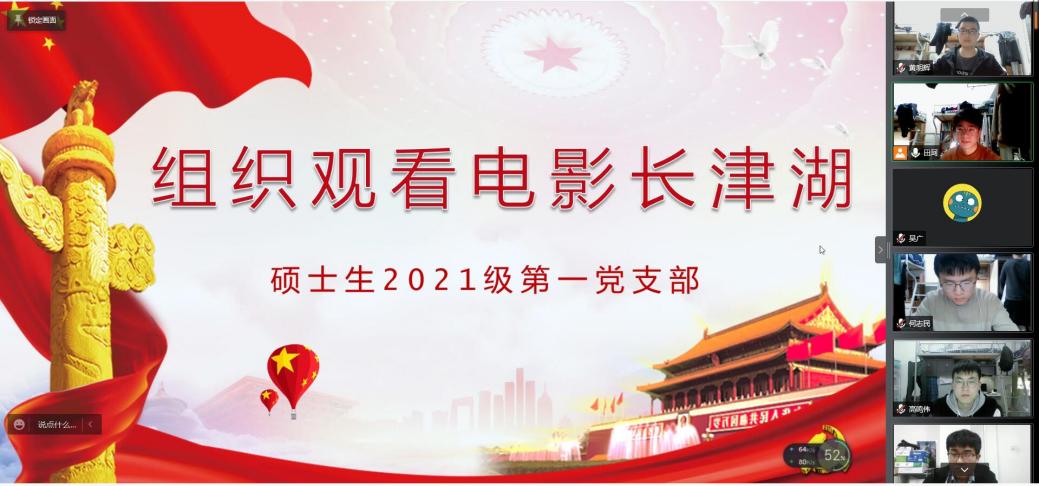 为了弘扬抗美援朝精神,增强支部成员的爱国主义情怀,2022年3月23日晚19:00,澳门娱乐城 硕士生2021级第一党支部组织全体党员线上观看红色电影《长津湖》,此次活动由支部书记田珂同志主持。