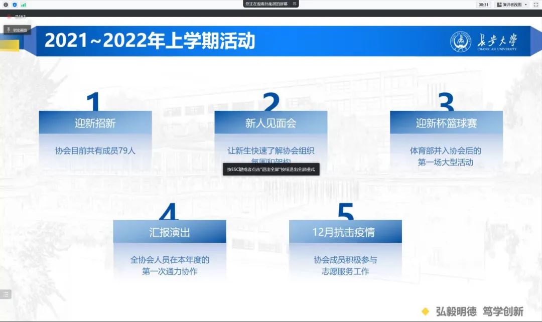 会议第三项,各部门部长对各自部门进行工作总结。部长们通过图文并茂的答辩,先对部员上一学期的工作表示肯定,同时强调了需要改进的问题。同时,各位部长也表达对部门及干事的期望,制定了新一学期的部门工作计划,并对下一阶段的任务做了详细的安排。
