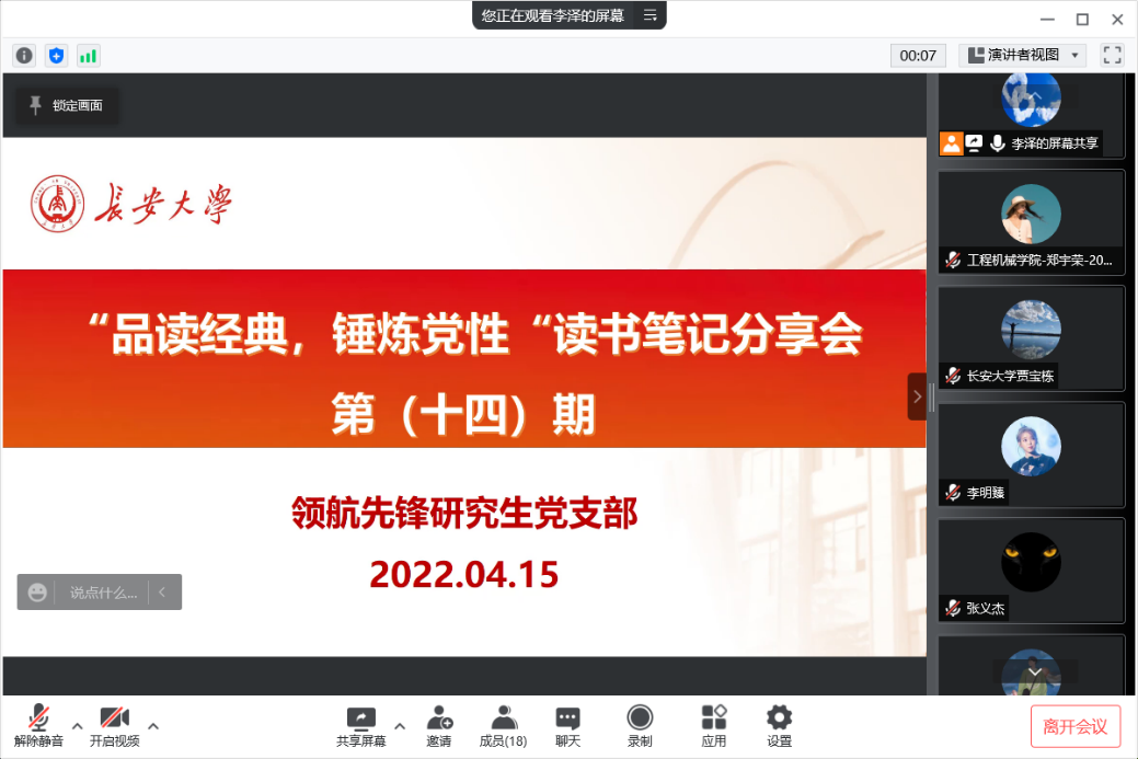 2022年4月15日上午10:00,澳门娱乐城 领航先锋党支部组织支部成员线上开展了第十四期读书笔记分享活动,本次活动由支部成员张腾同志和海来阿叶同志做读书笔记分享。支部全体党员参加了此次活动。