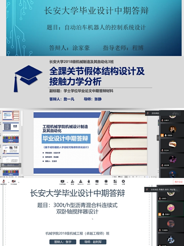 各系老师对答辩进行了精心准备和组织,2022届毕业设计中期检查汇报答辩圆满结束。通过此次答辩,澳门娱乐城 2022届本科生对毕业设计的各个环节有了更全面的了解,查漏补缺,追赶进度,这对他们最终圆满完成毕业设计具有极大的帮助。