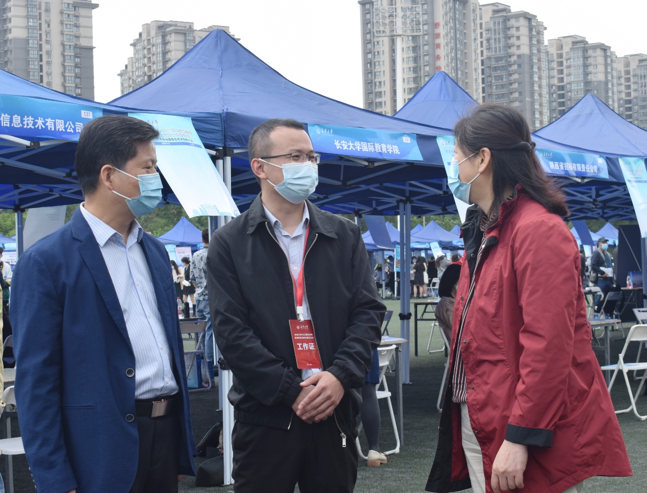 5月13日,长安大学2022届毕业生就业双向选择洽谈会在北校区朝晖体育场举办。澳门娱乐城 积极动员2022届、2023届学生参与双选会,引导学生认清就业形势、积极主动参与应聘。澳门娱乐城 党委书记于丽娟、党委副书记雷剑、学办主任谢静以及毕业班辅导员到场走访相关用人单位并进行深入洽谈。