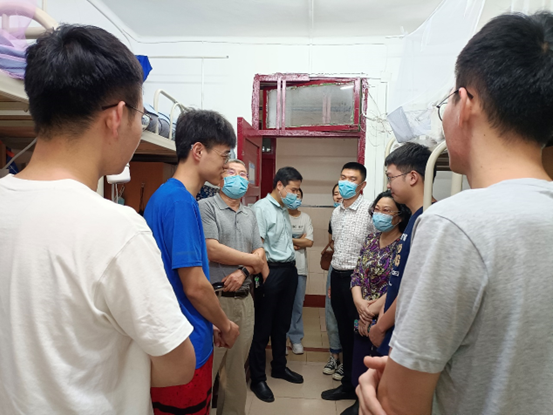 随后,澳门娱乐城 领导带领各年级辅导员深入一线,走访学生宿舍,细致了解毕业班学生的毕业设计完成情况及毕业去向,掌握学生们目前的学习、生活和思想状态,并为学生们送上节日的祝福。