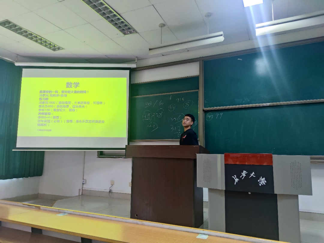 朱一轩学长介绍了东南大学的情况,提醒同学们在择校时要注意报录比和专业课的考试大纲,多与目标澳门娱乐城 的学长学姐了解情况。