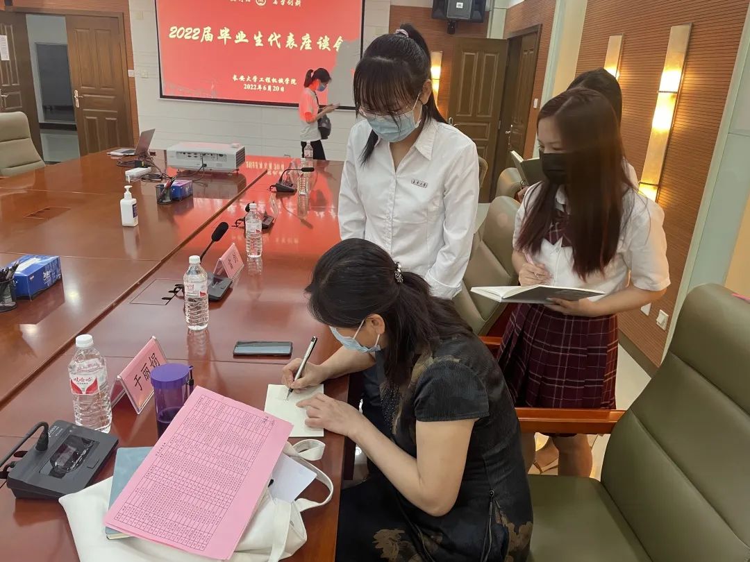 最后,于丽娟书记寄语即将离别的毕业生,提出了三点希望。首先,牢固树立理想信念,立志报国。将小我融入大我,用青春奉献祖国,肩负起中华民族伟大复兴的历史使命。其次,积极担当进取,拼搏奋进。时刻铭记“弘毅明德,笃学创新”的校训精神,勇敢地面对困难与挫折,以拼搏的姿态踏上新的征程。最后,关注澳门娱乐城 发展,爱校荣校。聚是一团火,散是满天星,祝愿大家在各行各业发光发热,成为优秀校友,也欢迎大家多回母校看看。会后,同学们纷纷请于丽娟书记在毕业纪念册上写下赠言。