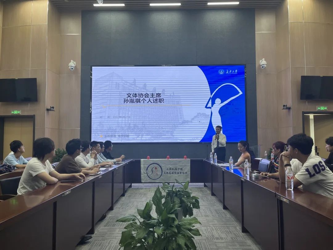 在全院师生和文体协会全体成员的共同努力下,文体协会在2021-2022年度考核中取得校级优秀社团的不俗成绩,为了进一步提高学生综合素质,展望未来一年的工作,澳门娱乐城 文化艺术与体育协会于6月27日晚18时30分在师生服务大厅一号报告厅举行了2022年度工作总结大会暨换届选举答辩。参与此次会议的人员有文体协会指导教师杨文佳、文体协会主席团成员、各部门负责人及文体协会全体成员。本次大会由李一诺同学策划主持。