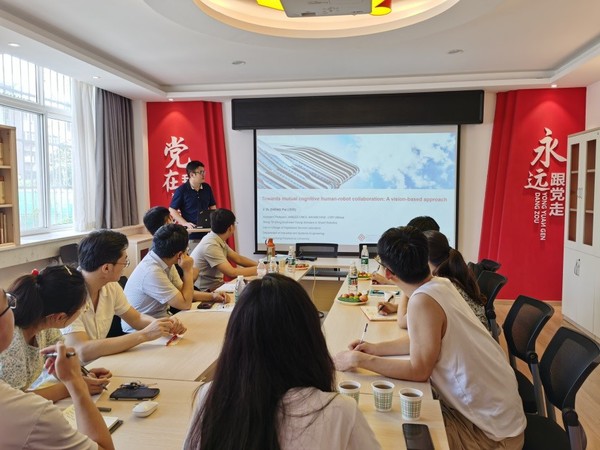 博士生张雅倩围绕人机协同装配课题与郑湃博士进行了深入地研讨,郑湃博士从SCI论文撰写、课题研究框架等方面给予了中肯的建议,解答了同学们研究过程中的疑惑问题,为后续开展人机协同领域的研究指明了方向。