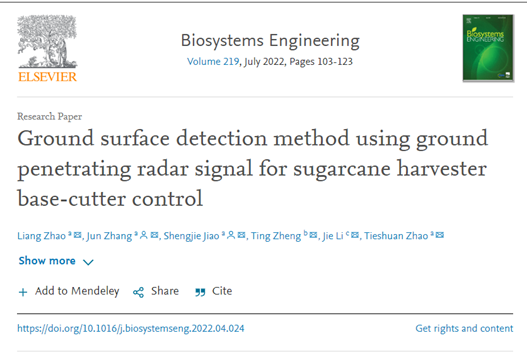 近期,农林科学领域的国际顶级期刊《Biosystems Engineering》正式刊登澳门娱乐城 博士生赵良的学术成果“基于探地雷达信号的甘蔗收割机割刀高度控制方法”(Ground surface detection method using ground penetrating radar signal for sugarcane harvester base-cutter control)。Biosystems Engineering(生物系统工程)期刊自2002年创刊(Elsevier出版社),是农林科学领域的两大国际顶级期刊之一,主要发表工程和物理科学的研究论文,在中科院分区中为TOP期刊,影响因子5.002,其小类农业综合为一区、大类农林科学为二区,在农林科学领域具有广泛影响力。博士生赵良为论文第一作者,张军副教授和焦生杰教授为共同通讯作者,长安大学为第一署名单位,美国Clemson大学博士后研究员Ting Zheng为合作作者。