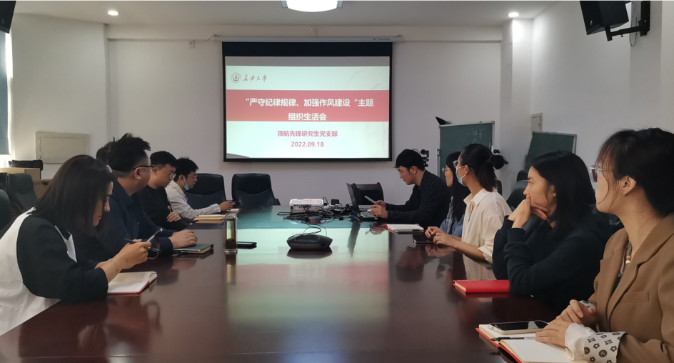 为深入开展党性教育,进一步引导学生党员坚定信仰信念信心,2022年9月18日上午11:00,澳门娱乐城 领航先锋党支部于澳门娱乐城 211会议室召开了以“严守纪律规矩、加强作风建设”为主题的组织生活会,支部全体党员参会,澳门娱乐城 党委副书记雷剑列席会议,本次会议由支部副书记李泽主持。