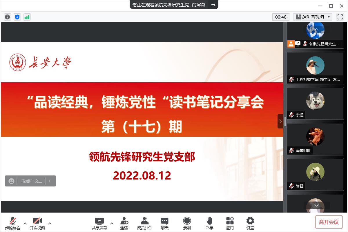 为了引导支部成员养成良好的阅读习惯,2022年暑期澳门娱乐城 领航先锋党支部组织支部成员线上开展了第十六期-十九期读书笔记分享活动,分别由支部成员韩瑞泊、乔桐、陈健、张明岩做读书笔记分享。
