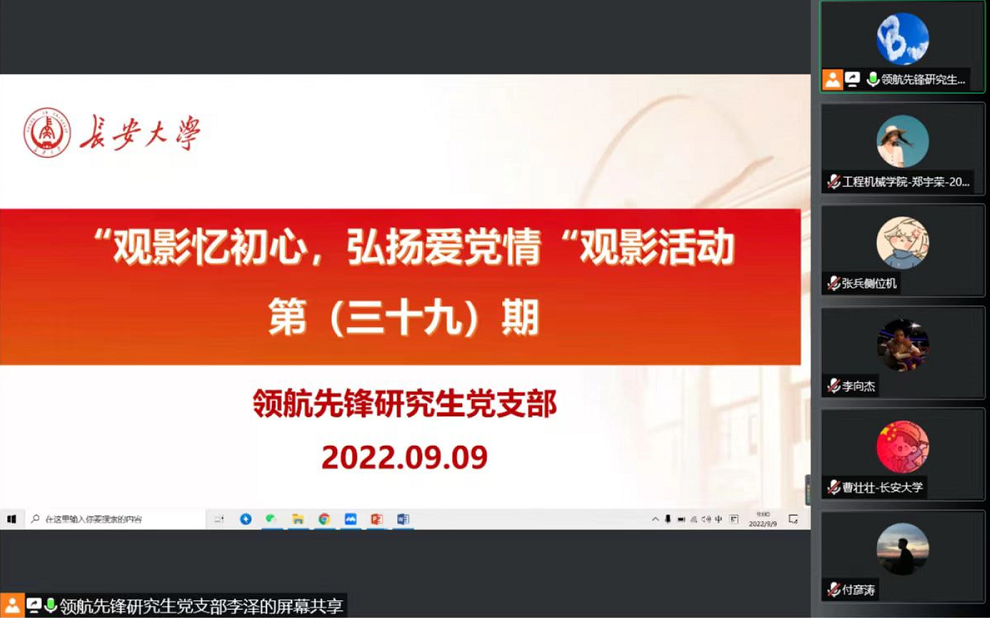 2022年9月9日,澳门娱乐城 领航先锋党支部组织支部成员线上观看共产党员网推出微视频《精神的追寻——特区精神》。