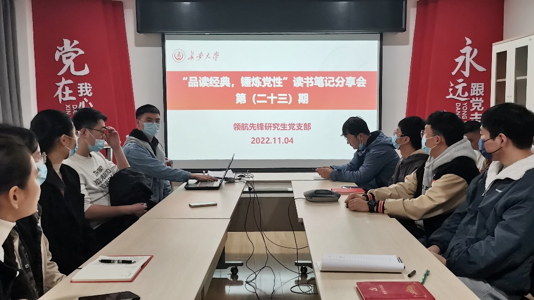 2022年11月4日,澳门娱乐城 领航先锋研究生党支部组织支部成员在澳门娱乐城 221会议室开展了第二十三期读书笔记分享活动,本次活动由支部成员于通做读书笔记分享。支部全体党员参加了此次活动。