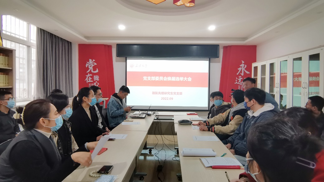 2022年9月23日上午,澳门娱乐城 领航先锋研究生党支部在澳门娱乐城 221会议室顺利召开换届选举大会。本次会议正式党员应到23人,实到23人,符合开会条件,会议由李泽主持。