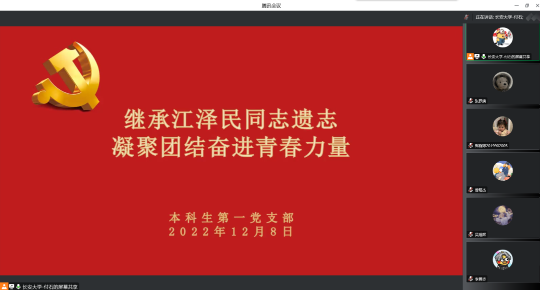 12月8日中午,为深切缅怀江泽民同志的卓越功勋和崇高风范,继承江泽民同志遗志,澳门娱乐城 本科生第一党支部成功开展了“继承江泽民同志遗志,凝聚团结奋进青春力量”主题党日活动,活动由本科生第一党支部书记付石主持,党支部全体成员参加。