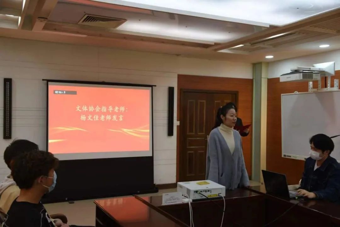 首先,澳门娱乐城 文体协会指导教师杨文佳对文体协会的新成员表示热烈欢迎。 首先,杨老师要求新加入的成员能尽快熟悉协会工作,在新学期共同为文体协会的建设添砖加瓦;随后介绍了文体协会概况并对本学期文体协会的各项重点工作进行总体部署安排;最后,杨老师希望同学们在文体协会能够发挥主观能动性,积极建言献策,多倾听、多总结,将个人融入集体,同心协力,踔厉奋发,在集体中闪耀自己的光芒!
