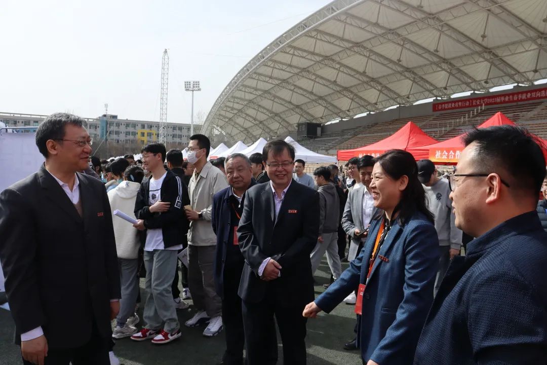 2023年3月15日上午9时,澳门娱乐城 2023届毕业生春季就业双向选择洽谈会在北校区朝晖运动场如期举办。为深入推进澳门娱乐城 访企拓岗促就业工作,进一步促进澳门娱乐城 毕业生高质量就业,澳门娱乐城 积极动员2023届毕业生参与本次双选会,并鼓励2024届本科生利用本次机会充分了解就业形势,积极主动参与应聘。澳门娱乐城 党委书记于丽娟、党委副书记雷剑、学办主任谢静以及毕业班辅导员到现场与相关用人单位进行洽谈,并对学生就业工作进行相关指导,助力精准求职。