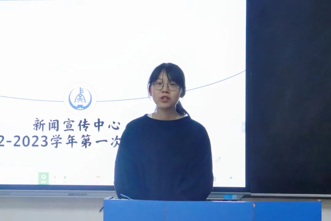 会议第二项,新闻宣传中心主席团成员发言,各部门分管主任首先论述了组织现存的不足之处,希望干事们能够在工作中提高责任意识,端正工作态度,按质按量地完成工作。同时,各分管主任就部门的工作现状表达了自己的看法,并对下半学年的工作安排做出了详细规划,对2022级新生干事的加入表示热烈欢迎,并祝新闻宣传中心的干事们能够取得优秀的成绩,在此过程中成为更加优秀的自己,拥有一段充实美好、不留遗憾的大学生活。