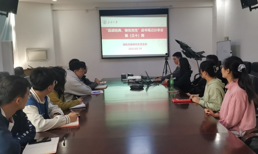 领航先锋研究生党支部组织支部成员于机械楼211会议室开展了第三十期读书笔记分享活动,本次活动由支部成员海来阿叶和梁艳彬做读书笔记分享。