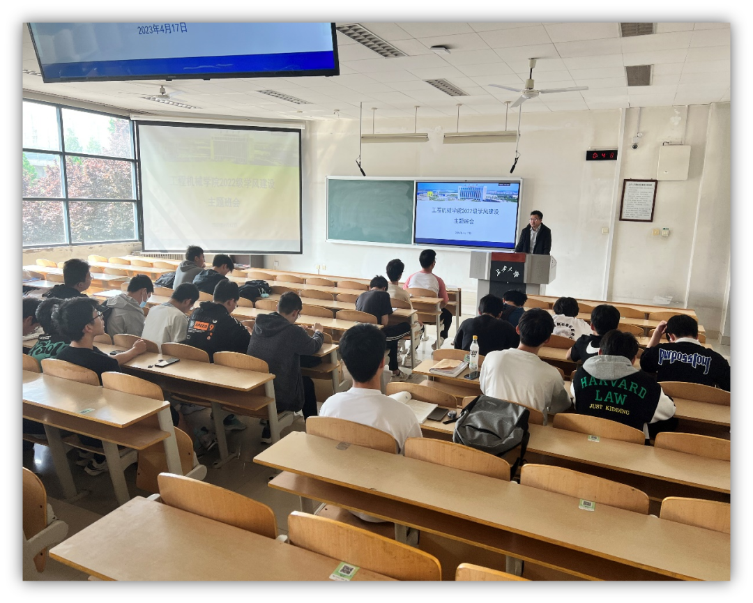 首先,吕景祥对机械学科的就业前景以及当前科技前沿进展情况进行了详细介绍,他结合当前新能源、人工智能等领域的科技发展讲述了自己对学习重要性的理解,希望同学们能通过自身的努力学习,去掌握更多的知识,为科技创新发展贡献出自己的力量。接着,吕老师又从时间投入以及自学能力两方面为同学们提供学习方法指导。最后,吕老师告诫同学们要守住学习的底线,争取不挂科,尽自己最大努力取得优秀成绩,同时提醒大家务必诚信考试,共同营造公平、积极向上的学习环境。