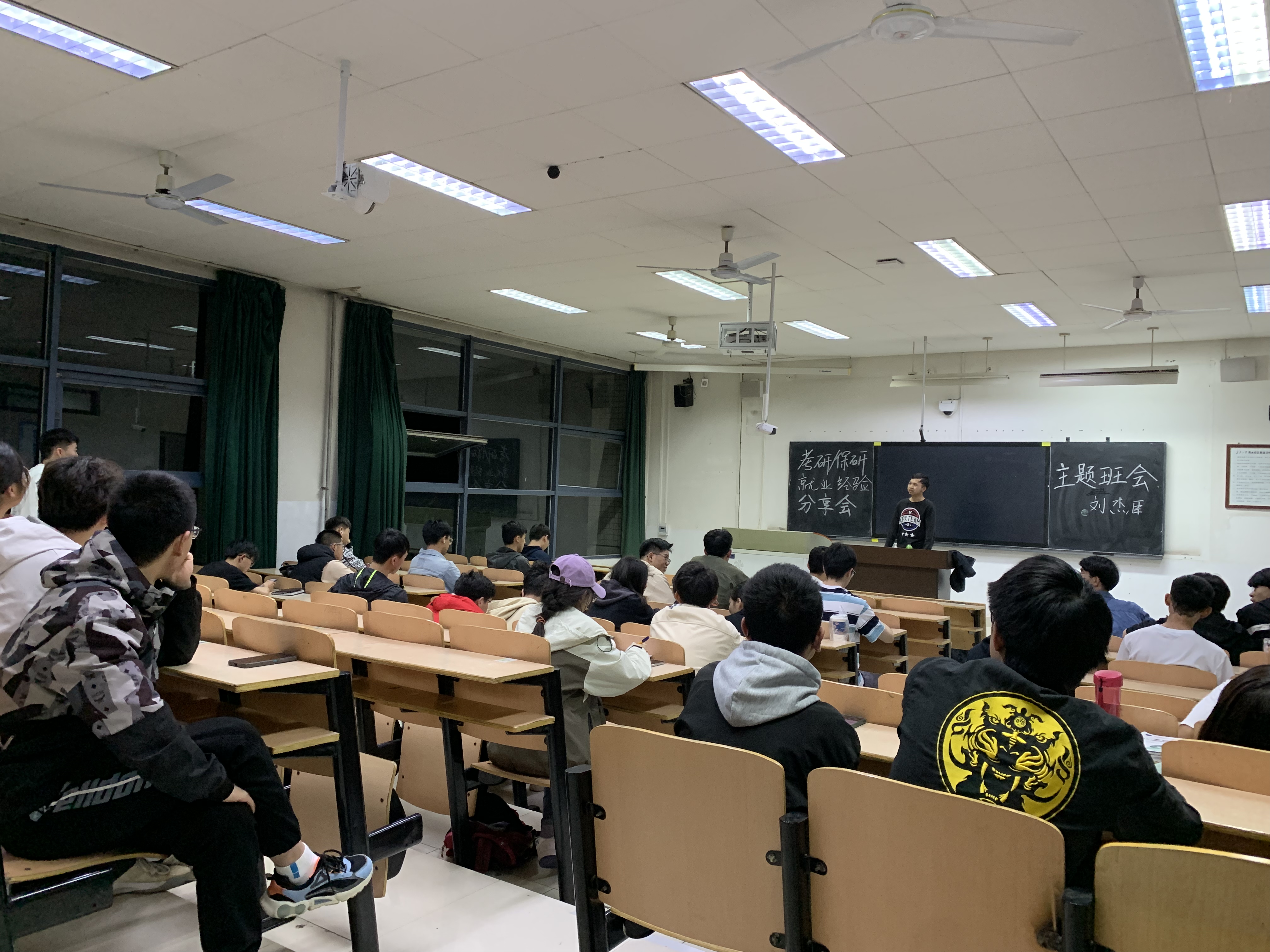 为了帮助学生更好地规划学业和职业生涯,2023年4月27日21:15在WM1101教室2022250010班、2020250701班联合举办考研、保研、就业经验分享主题班会,参会的有班级全体同学,2019级余家辉、刘杰臣、吕杰三位同学及班主任王剑老师。