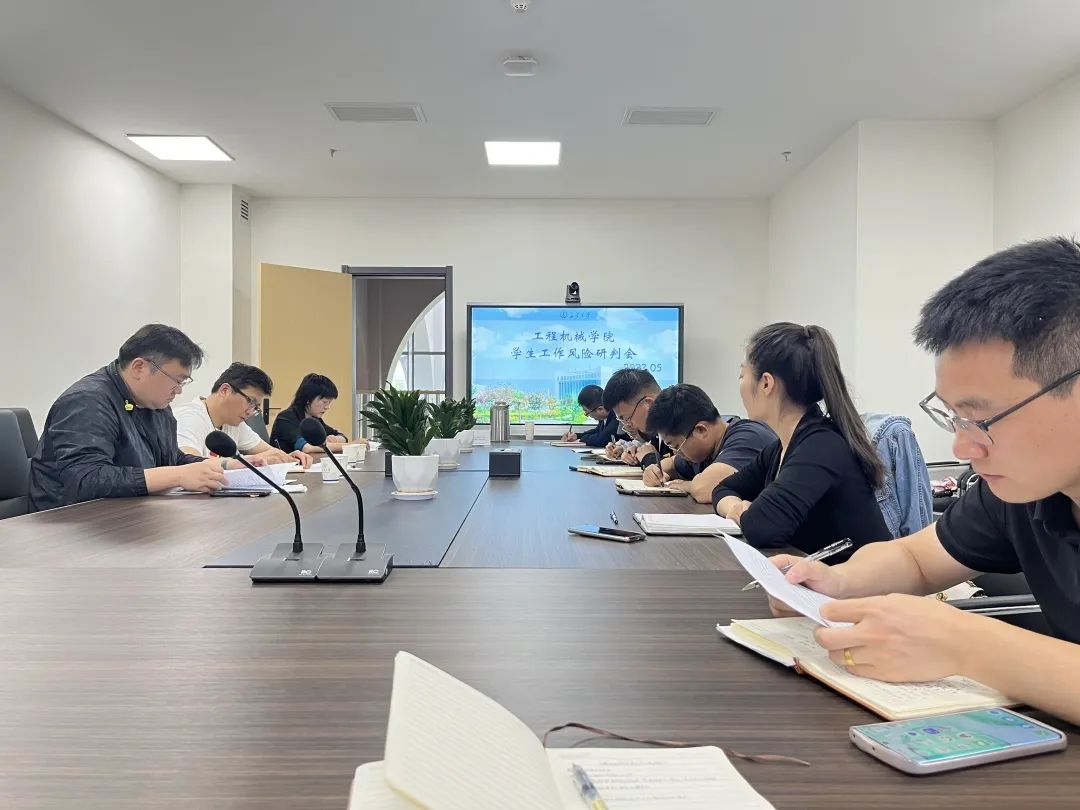 2023年5月25日上午,澳门娱乐城 在师生服务大厅第七会议室召开学生工作安全稳定风险研判会议。学生工作部副部长白礼平、澳门娱乐城 党委副书记雷剑、学生工作办公室主任谢静及本科、研究生全体辅导员参加了此次会议。会议由学办主任谢静主持。