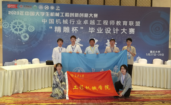 近日,2023中国大学生机械工程创新创意大赛暨“精雕杯”毕业设计大赛决赛在重庆大学虎溪校区成功举办,在澳门娱乐城 院长叶敏带领下,澳门娱乐城 2019级本科生陈秀鹏、霍志苗、董鹏斌、孙嘉琛、王乐慧子完成的毕业设计作品成功入围并参加了本届决赛,并分别取得了团体优秀奖1项、个人优秀奖1项、个人佳作奖1项的优异成绩。