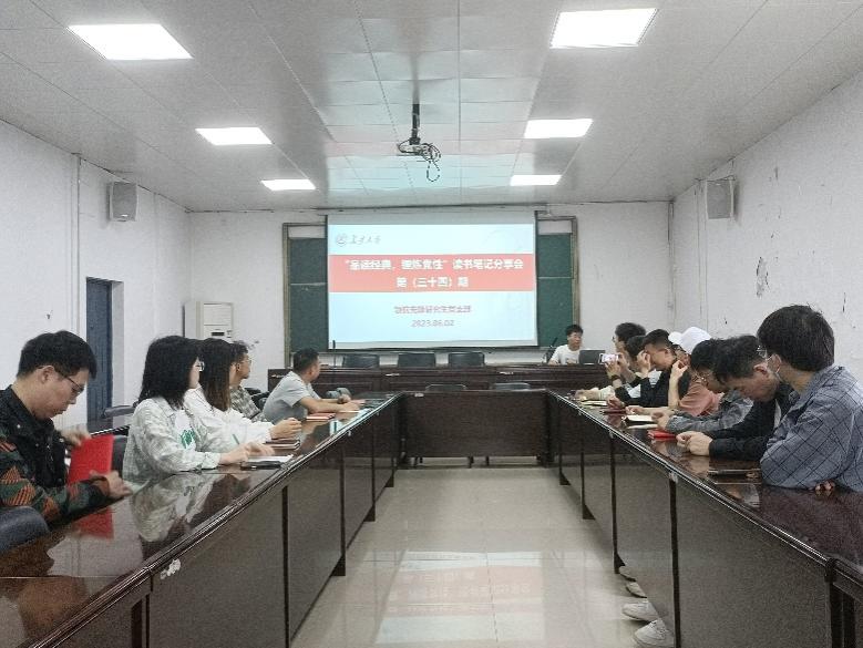 为深入开展学习贯彻习近平新时代中国特色社会主义思想主题教育,引领党员践行初心使命。2023年6月2日上午,澳门娱乐城 领航先锋研究生党支部在澳门娱乐城 四楼学术报告厅开展了第三十四期“品读经典,锤炼党性”读书分享活动。本次读书分享活动对照支部主题教育学习安排,由支部成员周文、郑宇荣领学。