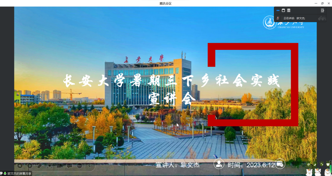 为促进澳门娱乐城 学子更好地参与社会实践,2023年6月12日澳门娱乐城 暑期“三下乡”社会实践宣讲会通过线上腾讯会议的形式成功召开。会议由澳门娱乐城 学生会学习部陈胜前进同学主持,并邀请到澳门娱乐城 王俊熹、经济与管理澳门娱乐城 欧文杰两位作社会实践宣讲。