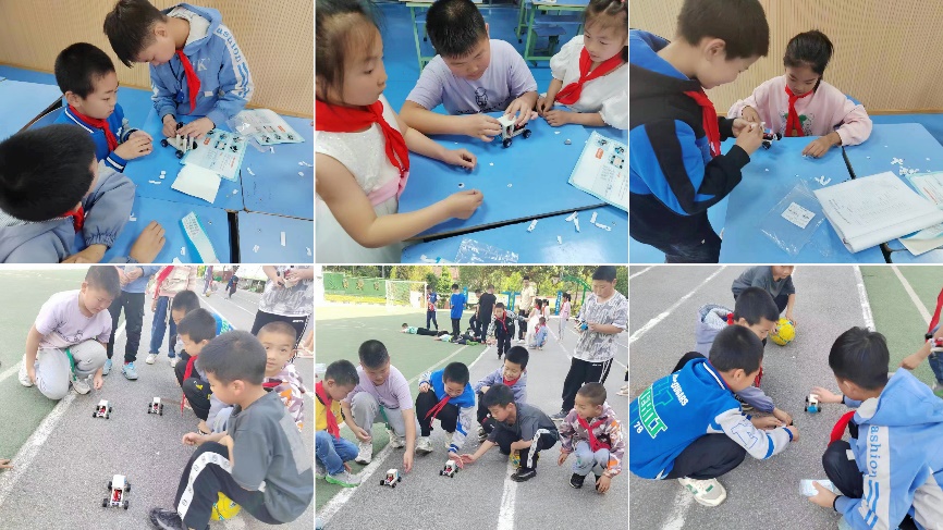 随后,周宇杰以现场直播教学的形式带领学生们开始着手搭建风力小车。在搭建的过程中,周宇杰引导孩子们观察、思考,并介绍各个零部件的作用,学生们跟着他的步骤认真进行拼装、固定,细致、耐心地核对图纸、配件及其对应的编号,准确把控安装顺序、方向和力道。经过周宇杰的耐心讲解及帮助,同学们逐步适应,陆陆续续地完成了制作。最后大家还进行了一场风力小车竞速赛,看看谁的小车跑的最快。