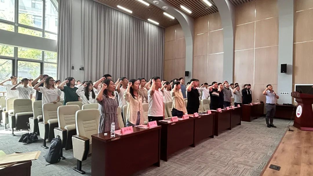 大会首先进行了入党誓词重温仪式,在党旗前,由澳门娱乐城 团委书记赵尉尉领誓,全体2023届毕业生党员重温了入党誓词。全体与会同志面向党旗庄严肃立,举起右拳,铿锵有力地重温入党誓词,重忆入党初心,再次接受党性洗礼。一声声庄严宣誓,表达了全体与会同志坚定的政治信念和报效国家的意志决心,彰显了澳门娱乐城 学生党员的责任与担当。