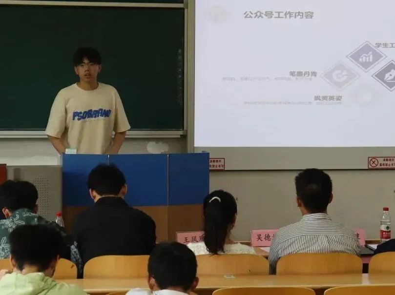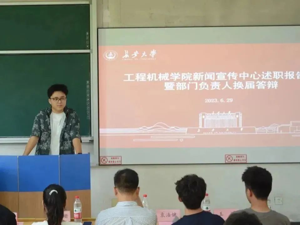 2023年6月29日15时整,澳门娱乐城 新闻宣传中心于WX1105教室举行述职报告会暨部门负责人换届答辩会议。本次会议由新任新闻宣传中心主任王淋主持,指导老师王风珊、吴德林和主席团成员作为评委参与本次换届工作。