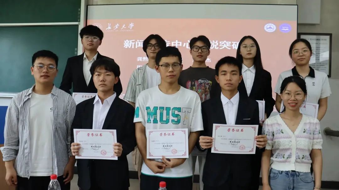 会议第二项,指导老师王风珊、吴德林为优秀个人进行颁奖。根据上一学年的工作表现以及对部门贡献综合评选,分别颁发了贡献奖、卓越奖和新锐突破奖。随后,新闻宣传中心全体工作人员合影留念。