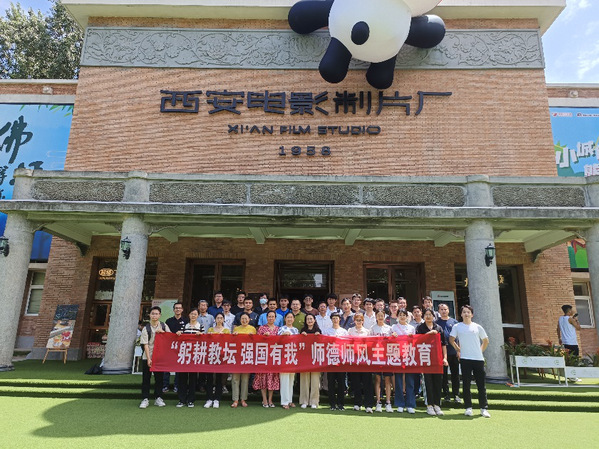 2023年7月5日下午,机械制造系党支部、公路装备系党支部与澳门娱乐城 本科生第五党支部前往西部电影制片厂开展了“躬耕教坛,强国有我”师德师风教育主题党日活动。本次活动共分为西影历史学习、音乐党课和师德师风教育三部分,机械制造系党支部书记贺朝霞、公路装备系党支部书记张志峰及本科生第五党支部书记安桐带领三个支部的全体师生党员参加了活动。