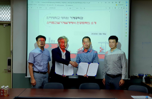 2023年7月4日,澳门娱乐城 副院长张新荣教授一行2人应邀到访韩国仁荷大学,并与仁荷大学机械工学系签订教育与研究合作谅解备忘录。签约仪式在仁荷大学工澳门娱乐城 会议室举行,仁荷大学机械工学系主任Seung-Bae Lee教授,仁荷大学先进车辆设计与控制研究所主任Chul-Hee Lee教授出席签约仪式,仁荷大学机械工学系办公室等部门负责人及在韩中国留学生代表参加签约仪式。