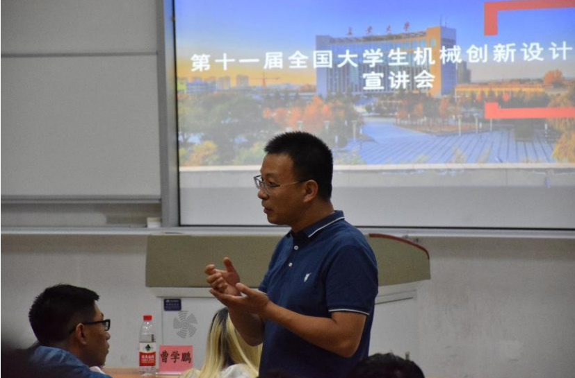 晚7时整,宣讲会准时开始,首先由贺朝霞致辞,她从比赛意义和对大学生的能力培养两方面讲述了机创赛的重要性,鼓励同学们积极参加比赛并预祝同学们在比赛中取得好成绩。