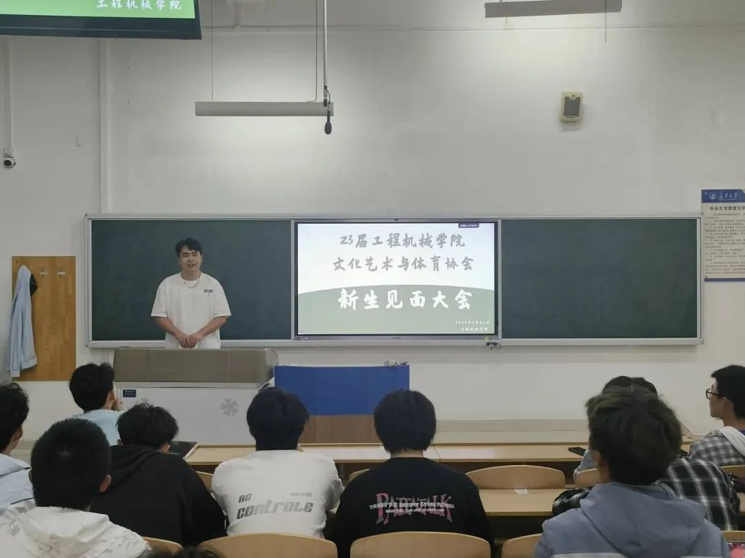 在本次见面会上,文体协会主席团成员先分别发表讲话,介绍了文体协会的主要职责,工作重心及协会文化,并通过对以往活动的介绍和经验的分享进一步增进了协会新生对协会各方面的认知,帮助23级新生更好的接受日后工作与大学生活。除此之外,本次见面会还开展了生动有趣的游戏,帮助新成员们能更快地熟悉彼此,培养感情,为日后部门内、部门与部门之间的高效沟通交流打下基础。最后,杨老师与新成员们亲切交流,讲述加入文体协会的重要性和必要性,激励同学们积极参与各项活动,贡献力量,共同书写文体协会新的篇章。