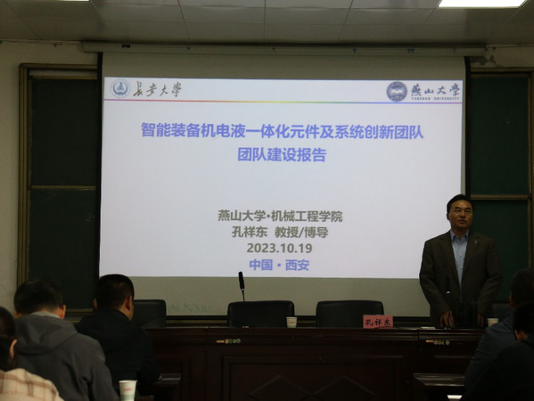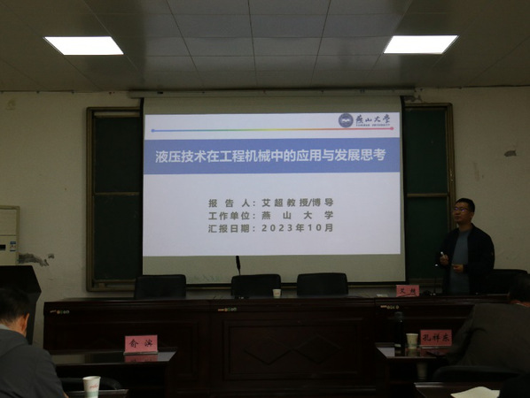 随后,孔祥东教授在澳门娱乐城 四楼报告厅进行了题为《智能装备机电液一体化元件及系统创新团队建设报告》的演讲。澳门娱乐城 全体教师以及研究生参加了讲座。他从燕山大学发展现状、团队建设基本情况、团队建设目标、团队建设思路与措施等方面进行了深入的分析和讲解,为澳门娱乐城 在科研团队建设提供了宝贵的建议。接下来艾超教授做了题为《液压技术在工程机械中的应用与发展思考》的报告。