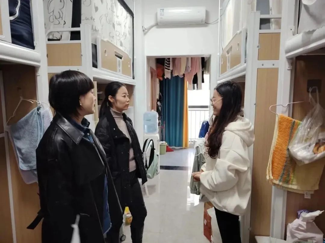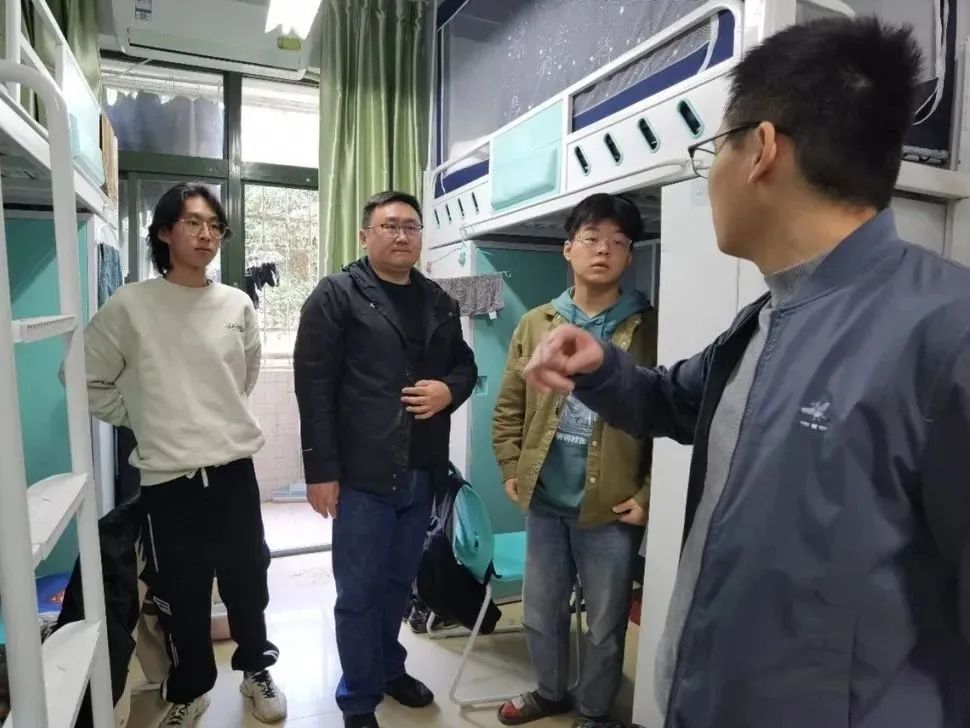 在走访各年级宿舍的过程中,雷剑及各年级辅导员就电信诈骗、校园交通安全、消防安全、用电安全、财产安全等方面的校园安全常识向同学们进行了宣传教育,希望同学们关注校园安全,提升安全防范意识。时值期中考试,各位老师还询问了同学们近期的学习生活情况,叮嘱同学们认真备考,诚信考试。