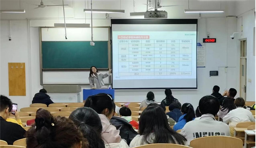 为帮助澳门娱乐城 学生有效备考四级,提高四级通过率,顺利达到学位证的审核要求,澳门娱乐城 学生会组织开展以阅读理解、翻译实战、听力训练、冲刺写作四个模块为核心的四级讲座,并组织举办四级模拟考试,全方位帮助同学们备考四级。