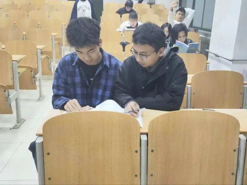 澳门娱乐城 学生会于2023年11月21日至考试周开展为期一个月的学业帮扶自习室活动。本次活动邀请谢展翔、宋艺、王佳坤、杨星瑞、熊予梁作为朋辈导师到朋辈互助自习室为学生们进行题目讲解。