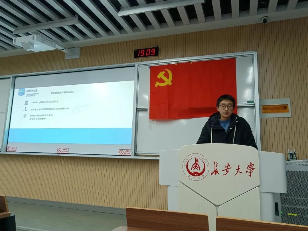 本次活动由支部成员蒋健勃分享了自己的学习心得,介绍了亚太经合组织的性质、产生背景以及成员国等,并聚焦“坚守初心,团结合作,携手共促亚太高质量增长”的讲话主题带领支部成员学习了习近平总书记提出的四条建议,对“坚持创新驱动、坚持开放导向、坚持绿色发展、坚持普惠共享”的方式和领域展开了讨论。