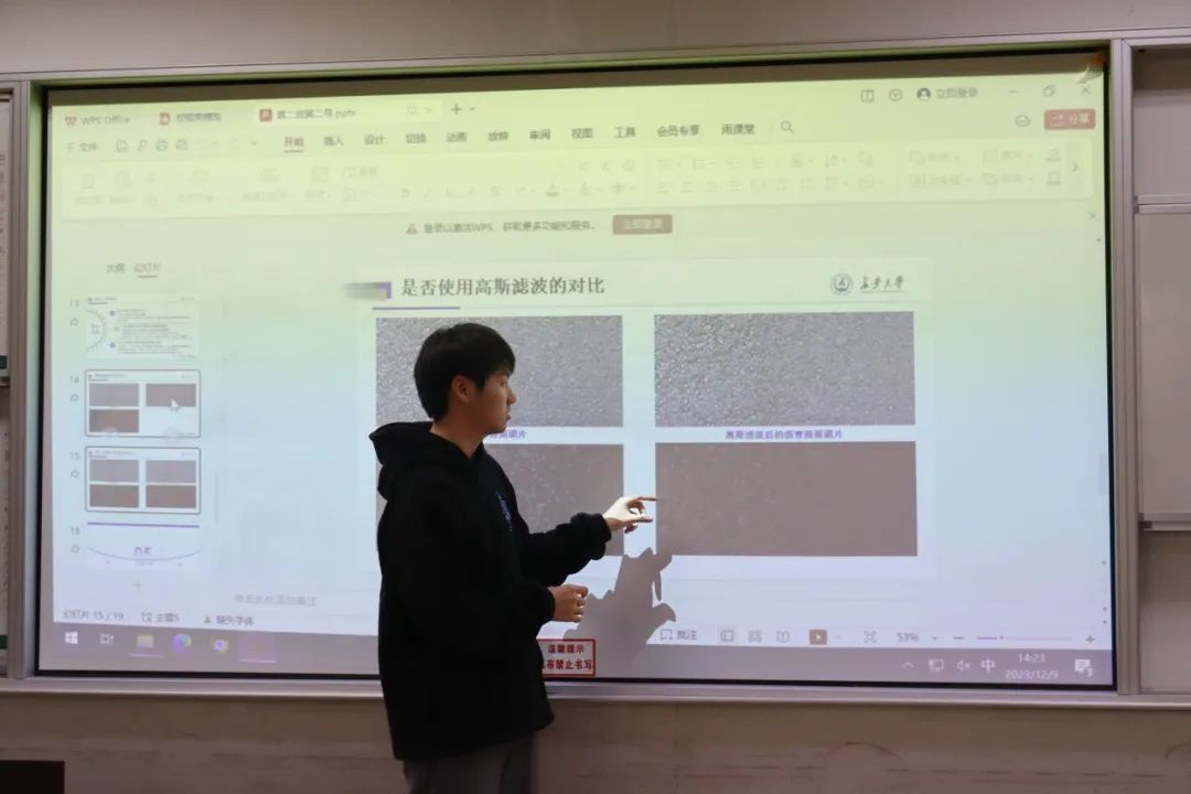 答辩环节中,各答辩选手言简意赅,逻辑清晰,详细地从项目背景及意义、项目主要内容、项目进度与成果、产品的优势与创新点、项目未来工作安排等多个方面进行项目的介绍。