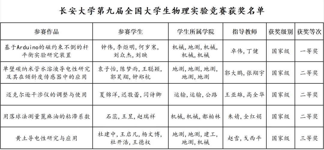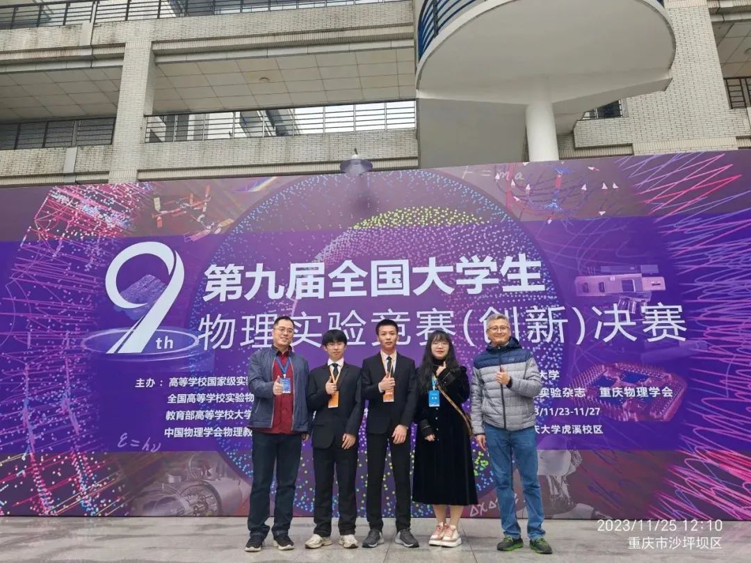 11月26日,2023年第九届全国大学生物理实验竞赛(创新)决赛在重庆大学落幕。澳门娱乐城5支代表队在国赛中斩获佳绩,获一等奖1项、二等奖3项、三等奖1项。