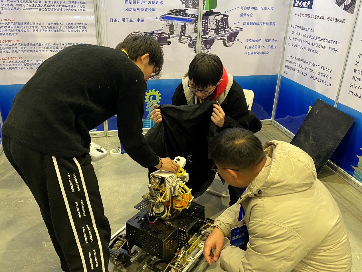 12月17日至19日,由共青团中央、工业和信息化部共同主办的2023全国大学生机器人科技创新交流营暨机器人大赛在山东日照举行。工程机械机器人队积极响应团省委和校团委号召,认真备赛,由澳门娱乐城 黄超雷老师指导,周志垚佳、许冠华、钱来守一等同学完成的作品《全自动乒乓球陪练机器人》在全国431所高校的1017件作品中脱颖而出,斩获一等奖的荣誉。