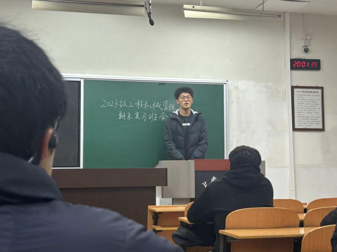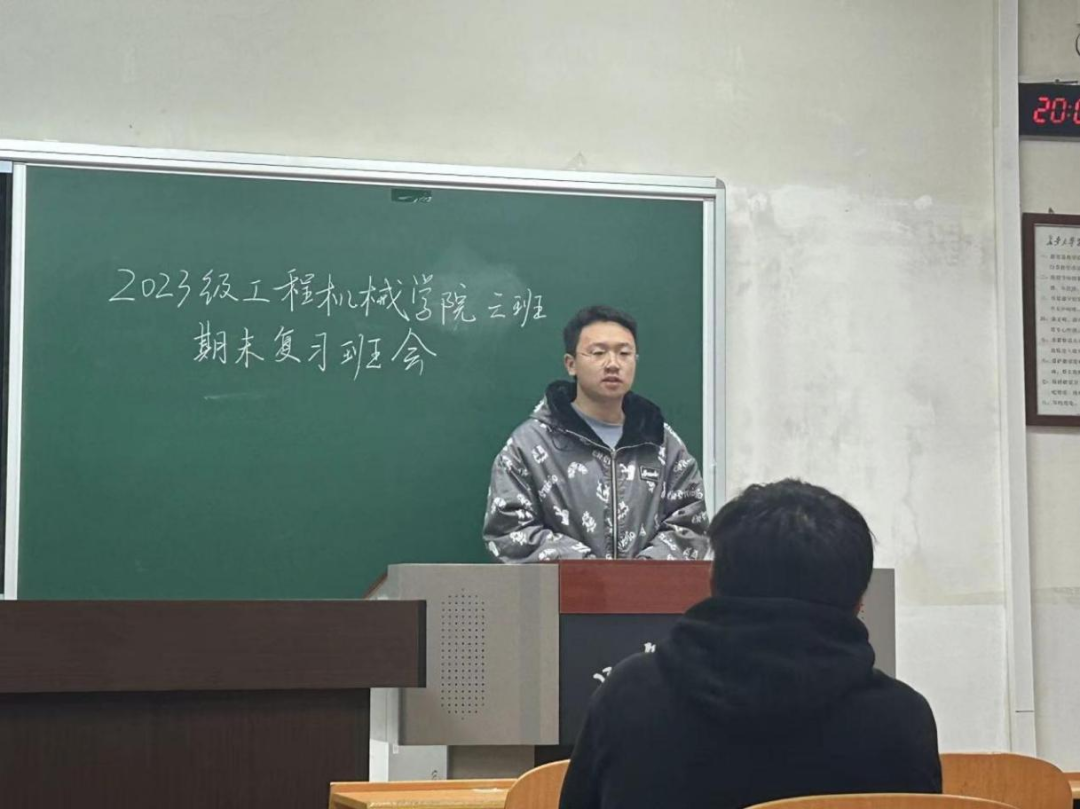 为帮助大家更好地制定期末复习计划,井然有序地进行期末复习,2023年12月27日晚,澳门娱乐城 2023级机械3班召开了期末复习班会。本次活动由班长王炳齐主持,2023级辅导员左意老师和机械3班全体同学参加。