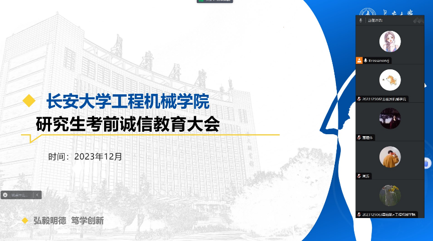 临近期末,为端正考风考纪,进一步加强澳门娱乐城 学风建设,培养学生的学术诚信、营造浓厚的学术氛围,2023年12月20日,澳门娱乐城 线上开展了学术诚信教育讲座。研究生辅导员高婷婷、寇文娟、张琳璇,2023级全体研究生参加。澳门娱乐城 希望通过此次讲座让学生更加深入地了解学术诚信的重要性,增强他们的学术自律意识,倡导严谨规范的学术行为,营造良好的学术环境,避免作弊和抄袭等不良行为。