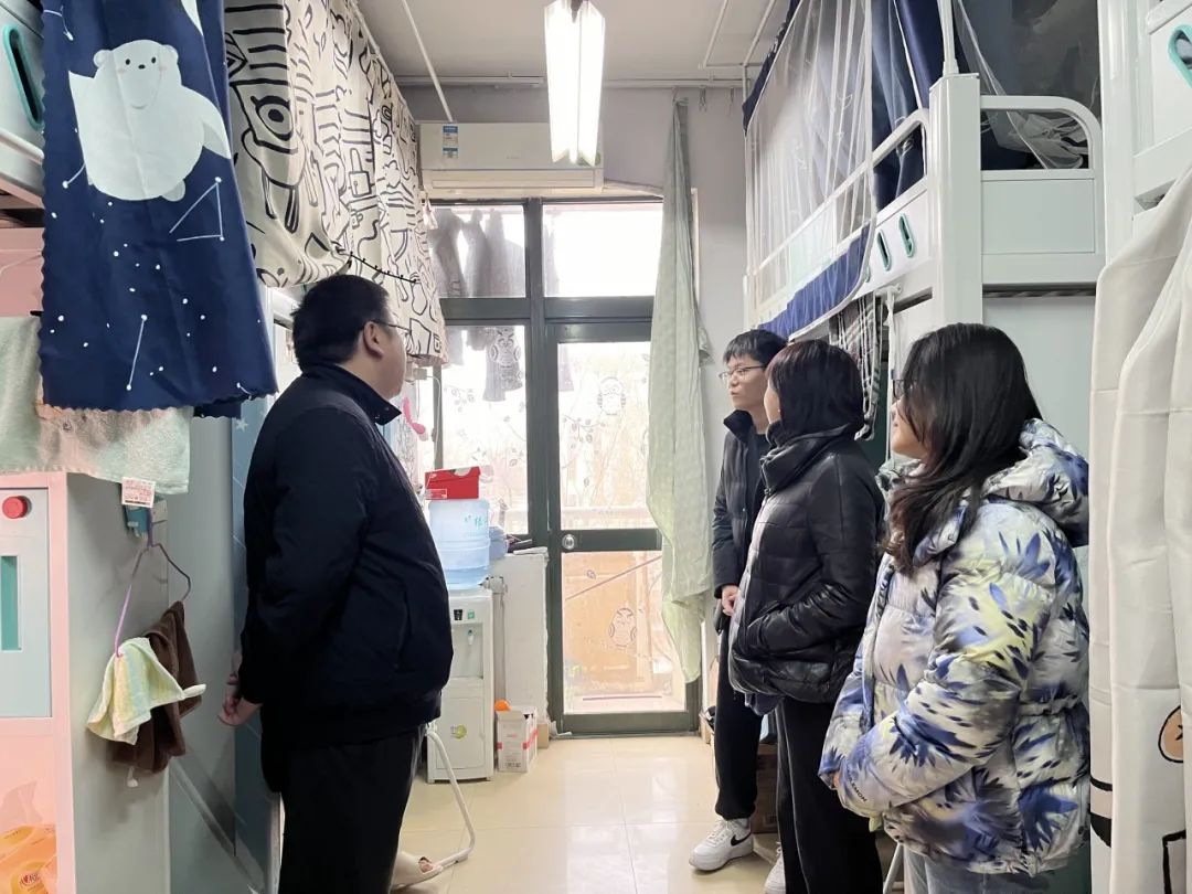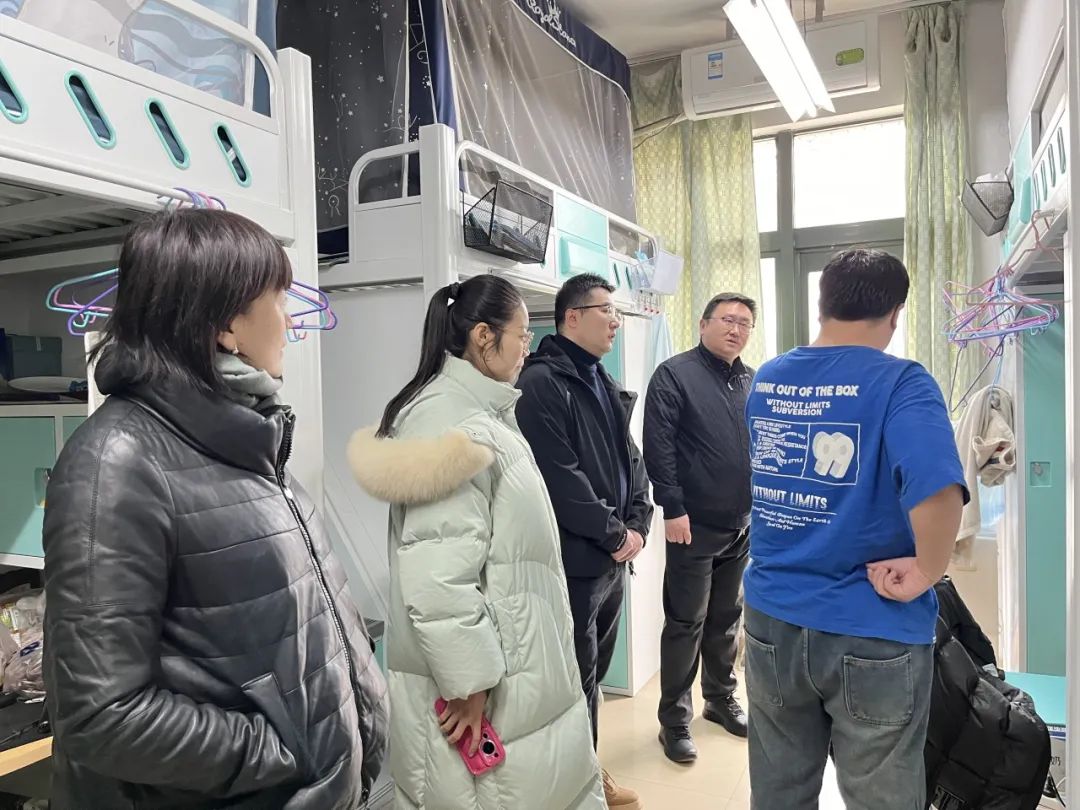 新学期伊始,为深入了解学生返校后的学习生活情况,做好学生教育管理工作,加强学生宿舍安全管理,2月28日上午,澳门娱乐城 党委副书记雷剑、副院长贺朝霞与各年级辅导员老师前往学生公寓进行宿舍走访工作。